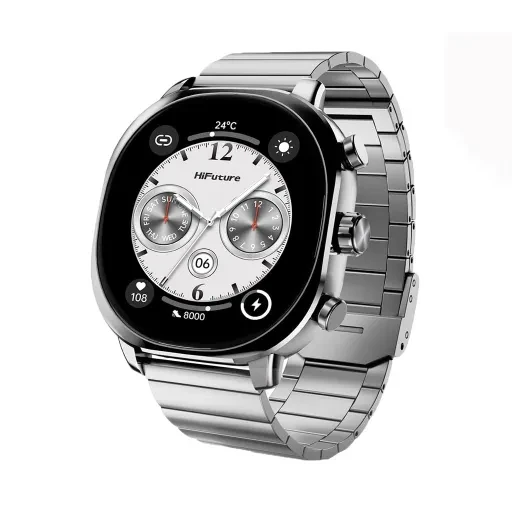 اگر به دنبال ساعتی هستید که ظاهری لوکس، امکاناتی پیشرفته و عملکردی مطمئن را در یک طراحی منحصربهفرد گرد هم آورده باشد، ساعت هوشمند HiFuture AIX انتخابی بینظیر برای شماست. این ساعت با بدنهای از استیل ضدزنگ و بند فلزی با قفل مخفی، ظاهری شیک و رسمی دارد که الهامگرفته از ساعتهای کلاسیک سوئیسی است، اما در دل خود، دنیایی از تکنولوژی مدرن را جای داده است.
