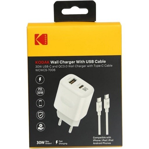 شارژرهای دیواری مدرن باید علاوه بر تأمین توان کافی، از استانداردهای روز در حوزه ایمنی، سرعت شارژ و تطابق با پروتکلهای مختلف پشتیبانی کنند. شارژر Kodak WCWCS-7006 با توان 30 وات واقعی، برخورداری از دو پورت خروجی (USB-C و USB-A) و کابل همراه USB-C به USB-C، نمونهای از یک شارژر دیواری چندمنظوره و باکیفیت است که برای کاربران حرفهای و عمومی طراحی شده است.