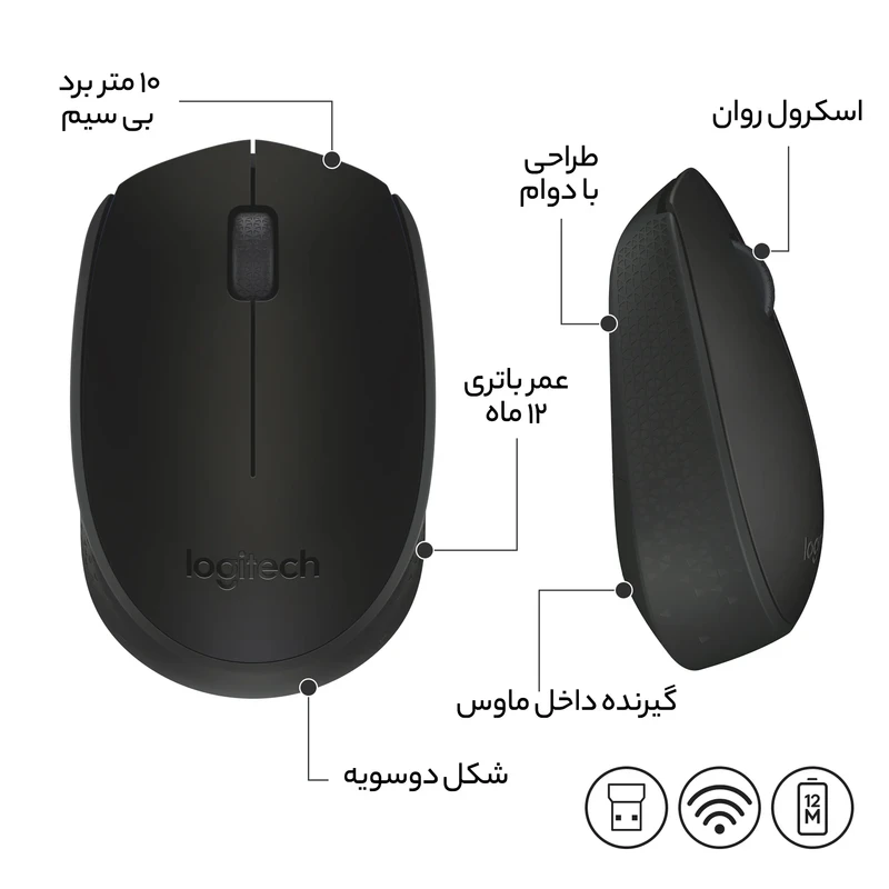 ماوس بیسیم Logitech M170 یک انتخاب مطمئن، اقتصادی و بدون پیچیدگی است. طراحی ساده اما کاربردی، اتصال سریع و پایدار، عمر باتری مناسب و سازگاری وسیع با سیستمعاملهای مختلف، همگی آن را به گزینهای ایدهآل برای کاربری عمومی تبدیل کردهاند.