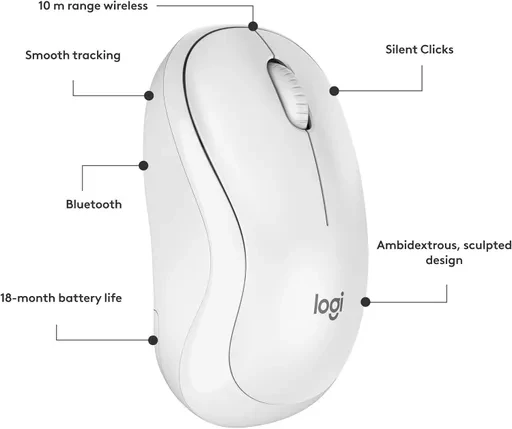 ماوس بیسیم لاجیتک مدل Logitech M240 Silent یکی از محصولات جمعوجور و کارآمد لاجیتک است که برای کاربری عمومی و روزمره طراحی شده است. این ماوس بیسیم لاجیتک در ابعاد فولسایز ساخته شده و به دلیل طراحی متقارن، هم برای افراد راستدست و هم چپدست مناسب است.