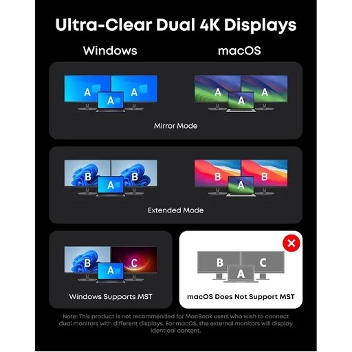 برای macOS: تصویر در دو مانیتور خارجی یکسان خواهد بود (Mirror)