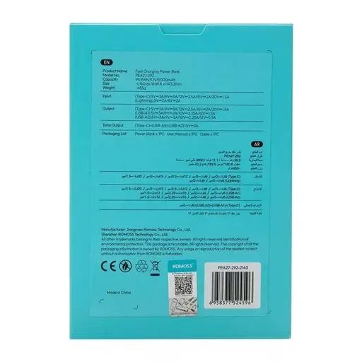 پاوربانک روموس 30 وات مدل PEA27-292 یک شارژر همراه ظرفیت بالا (27000 میلیآمپر ساعت) است که برای کاربران حرفهای و کسانی که نیاز به شارژ چند دستگاه بهطور همزمان دارند، طراحی شده است. این مدل با تمرکز بر توان بالا، قابلیت فست شارژ و نمایشگر دیجیتال، گزینهای مناسب برای سفر، استفاده روزمره و محیطهای کاری است.