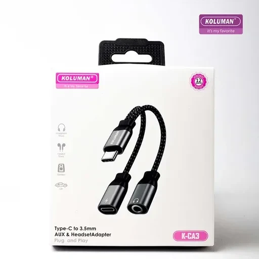 کابل تبدیل Koluman K-CA3 محصولی کاربردی و بادوام از برند کلومن است که با هدف رفع محدودیت دستگاههای فاقد جک ۳.۵ میلیمتری طراحی شده است. این مبدل به کاربران دستگاههای مجهز به درگاه USB Type-C اجازه میدهد تا بهصورت همزمان از خروجی صوتی AUX و درگاه USB-C برای شارژ یا انتقال داده استفاده کنند.