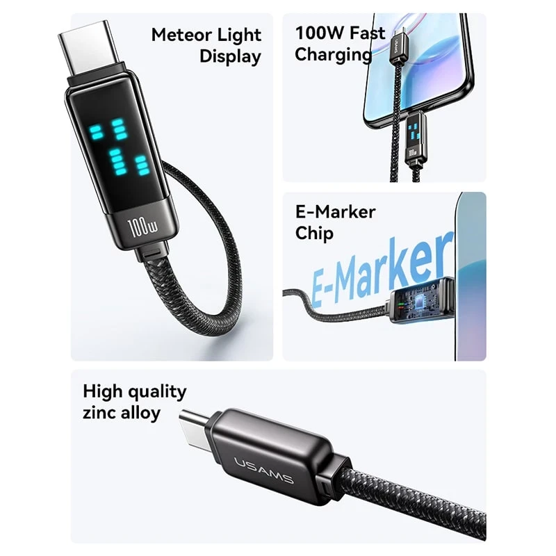 کابل Usams SJ744 از سری Meteor، یک کابل Type-C به Type-C حرفهای است که برای کاربرانی طراحی شده که به سرعت بالا، توان زیاد و دوام بالا اهمیت میدهند. این کابل با توان ۱۰۰ وات، پشتیبانی از فناوری Power Delivery (PD) و نمایشگر LED هوشمند، گزینهای ایدهآل برای شارژ سریع گوشی، تبلت و حتی لپتاپهای مجهز به درگاه USB-C محسوب میشود.