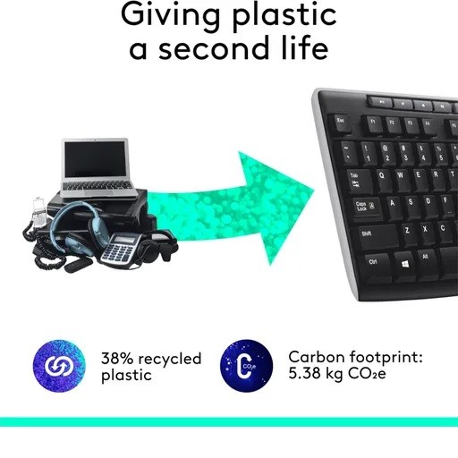 بدنه K270 از پلاستیک با کیفیت ساخته شده که ۳۸٪ آن از پلاستیک بازیافتی تأییدشده تشکیل شده است. این موضوع نه تنها در راستای سیاستهای زیستمحیطی لاجیتک قرار دارد، بلکه در ساختاری مقاوم و سبک نیز نمود یافته است. با وزن ۴۸۱ گرم و ابعاد ۴۳.۸ × ۱۴.۶ × ۱.۹ سانتیمتر، کیبورد فضای زیادی اشغال نمیکند و بهراحتی قابل جابجایی است.