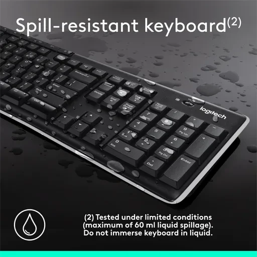منبع تغذیه K270 دو عدد باتری AAA است که در بستهبندی محصول قرار دارد. لاجیتک با بهینهسازی مصرف انرژی، عمر باتری را تا ۲۴ ماه تضمین کرده است. این مقدار در عمل نیز، بسته به نوع استفاده، کاملاً قابل دستیابی است و کاربر را از نگرانی بابت تعویض مکرر باتری بینیاز میکند.