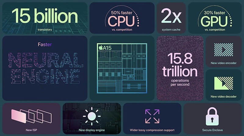 | تراشه | Apple A۱۵ Bionic (۵ nm) Chipset |