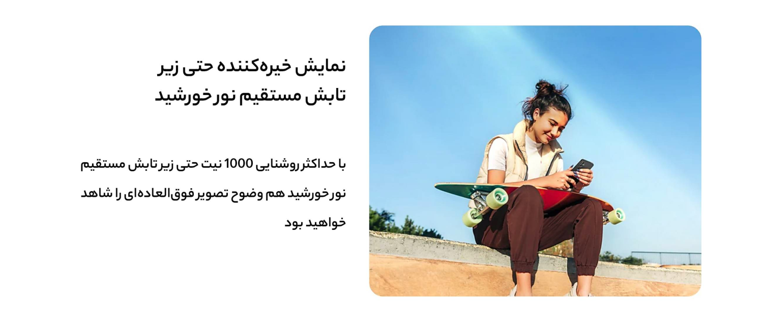تا اینجا با توجه به میزان رزولوشن، میزان PPI و پنل بسیار باکیفیت صفحهنمایش، بدون شک متوجه شدهاید که با یکی از قدرتمندترین صفحاتنمایش در میان گوشیهای هوشمند میانرده روبرو هستید، اما سامسونگ برای صفحهنمایش Galaxy A54 5G بسیار بیشتر از این هزینه کرده است. نرخ بروزرسانی عالی ۱۲۰ هرتز این امکان را فراهم کرده تا عملکرد بسیار روان و بدون لگ داشته باشد و این نرخ بروزرسانی تاثیر بسیار بالایی در ارائه هرچه بهتر کیفیت در اجرای بازیهای سنگین (کال آف دیوتی موبایل) و تماشای ویدئو داشته باشد. نکته جالب توجه، توانایی ارائه حداکثر روشنایی ۱۰۰۰ نیت (nits) این صفحهنمایش است. چنین مقدار روشنایی سبب شده تا نه تنها در شرایط نور مختلف، بلکه زیر تابش مستقیم نور خورشید هم، وضوح تصویر و خوانایی آیکون بسیار خوبی داشته باشد.